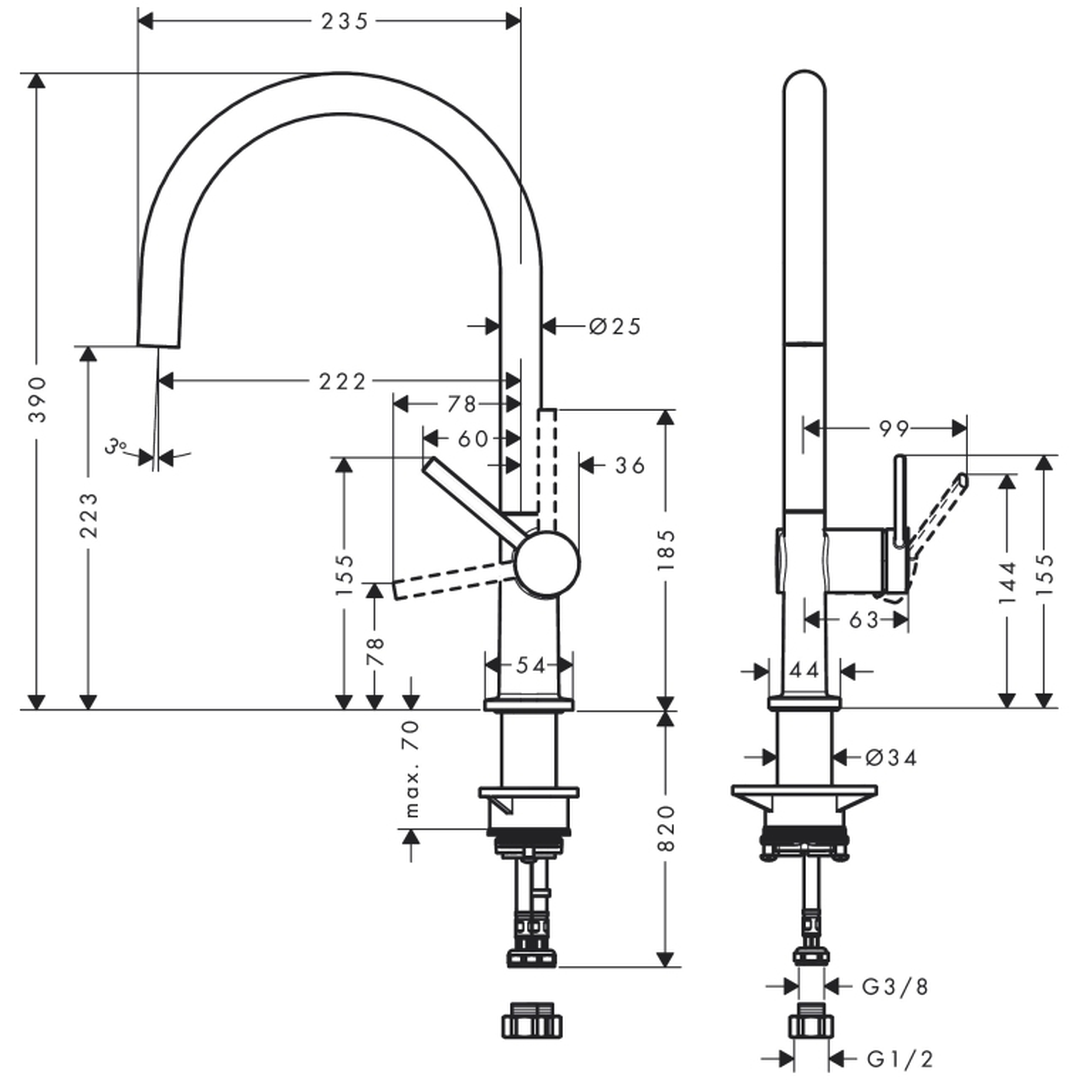 A hansgrohe kitchen mixer designed for smooth operation, everyday durability, and clean modern styling. Available in multiple finish options where applicable.