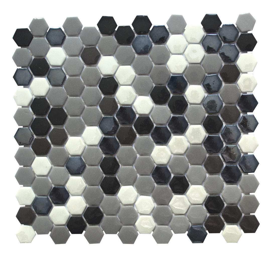 Mini Hex - Black & Grey - 23mm (303x275), premium mosaic tile, Castaway Earthstone, wall tile, floor tile, reconstituted stone, natural stone, porcelain tile