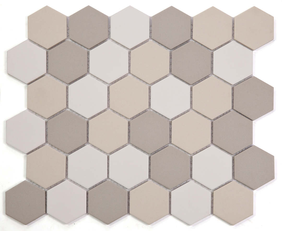 Description: Upgrade your interiors with the Beige Mix - HEX(M) - Matt - 51mm (325x282), a versatile and high-quality mosaic tile from Castaway's Earthstone collection. Perfect for bathrooms, kitchens, feature walls, and outdoor spaces.